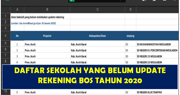 Inilah Daftar Sekolah Yang Belum Update Rekening Bos Tahun 2020