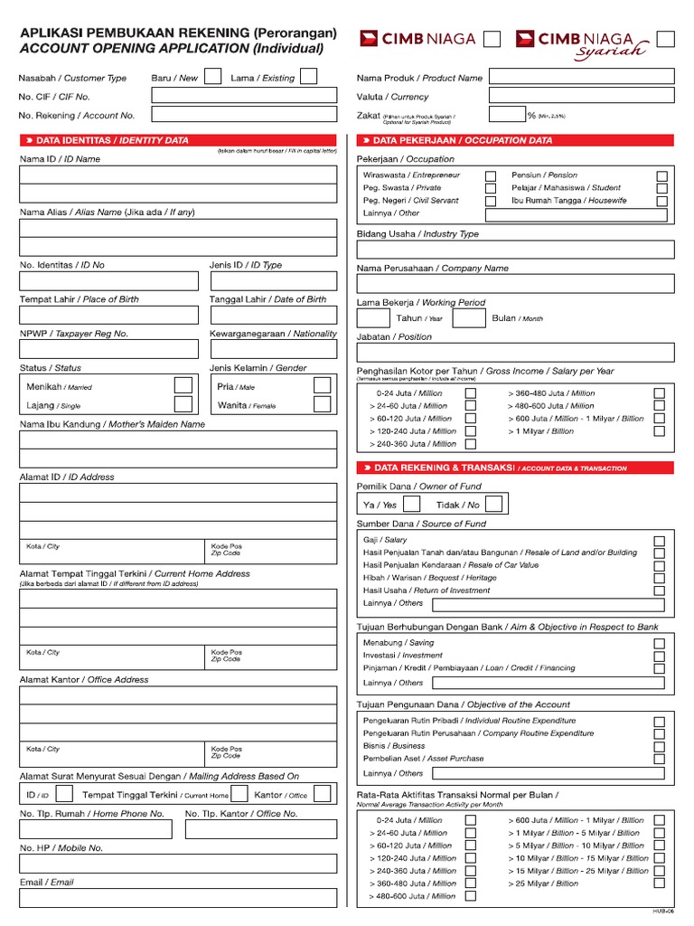Formulir Pembukaan Rekening Investor Bank Cimb Niaga Fatca