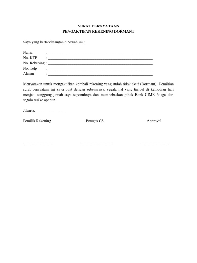 surat pengaktifan rekening dormant bank mandiri